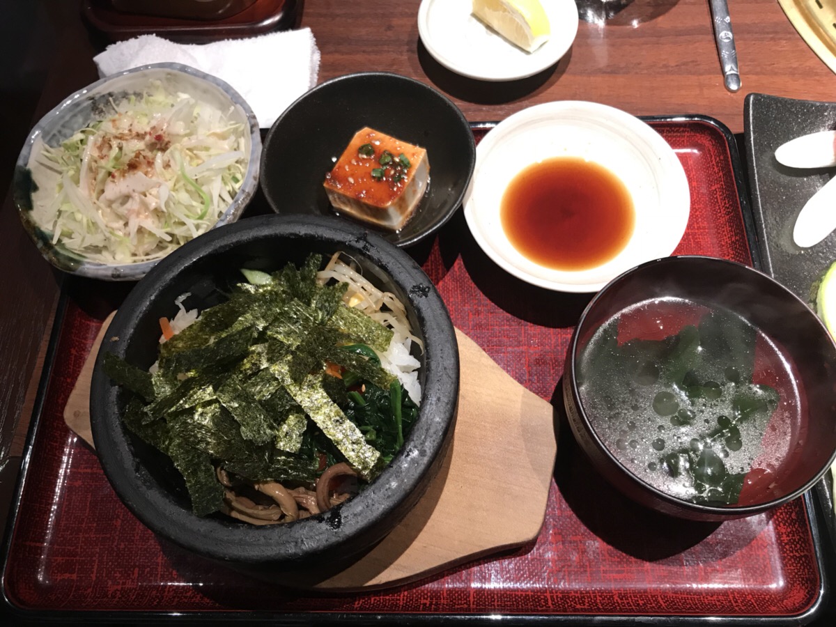 お肉の盛り合わせにビビンバや小鉢まで付いてきました!