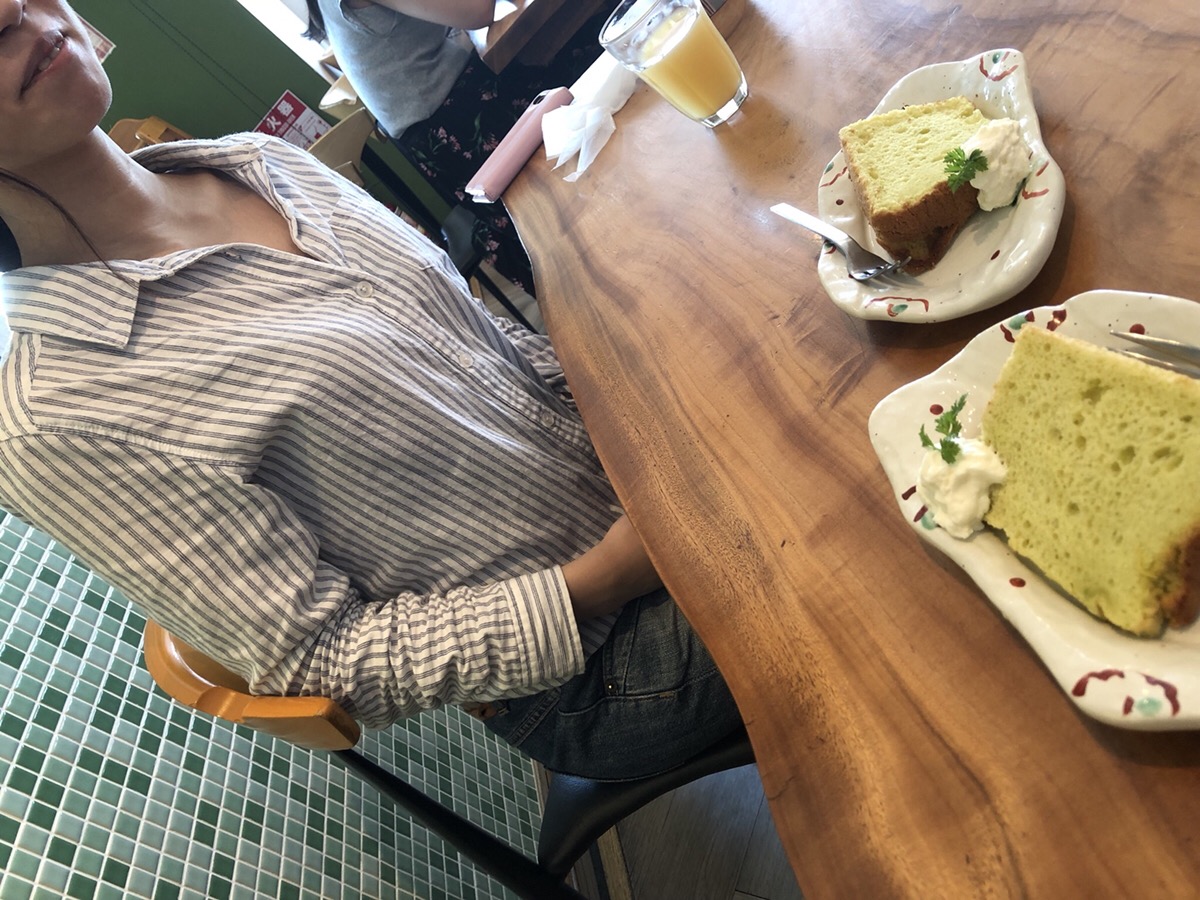 グリーンピースのシフォンケーキとりんごジュースで〆です。