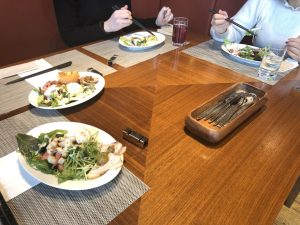 サラダにお肉にデザートまでしっかり食べて、
