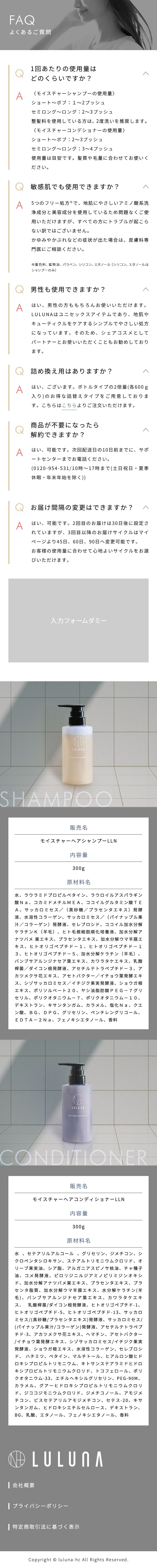 化粧品・健康食品通販に特化したWeb制作のアドライズ | LULUNA -ルルーナ- モイスチャーヘアシャンプーLLN&モイスチャーヘアコンディショナーLLN/LPリニューアル