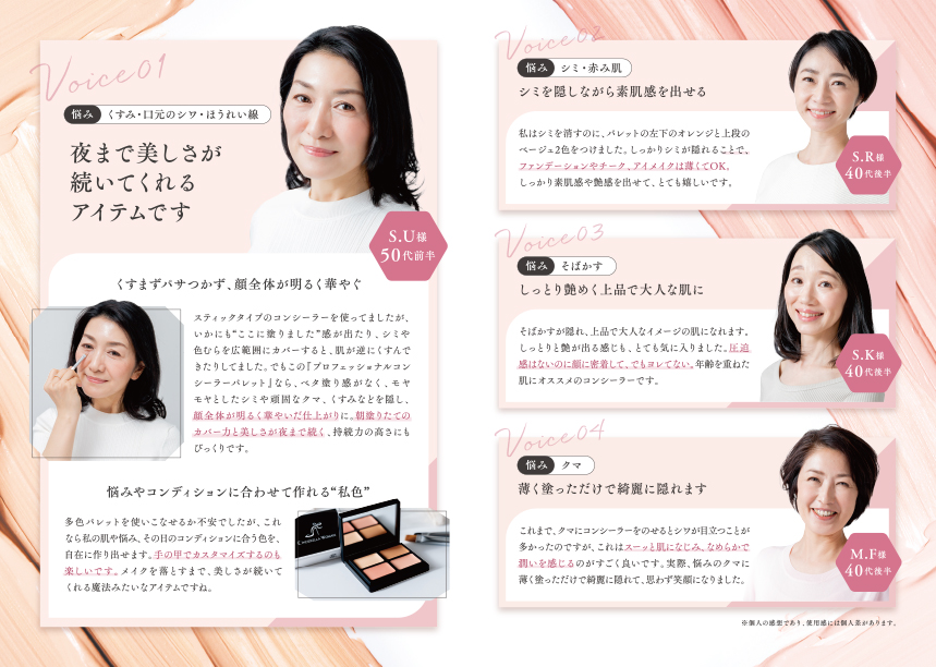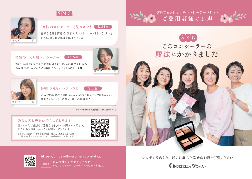 化粧品・健康食品通販に特化したWeb制作のアドライズ | Cinderella Woman -シンデレラウーマン- プロフェッショナルコンシーラーパレット/VOCチラシ_A4二つ折り